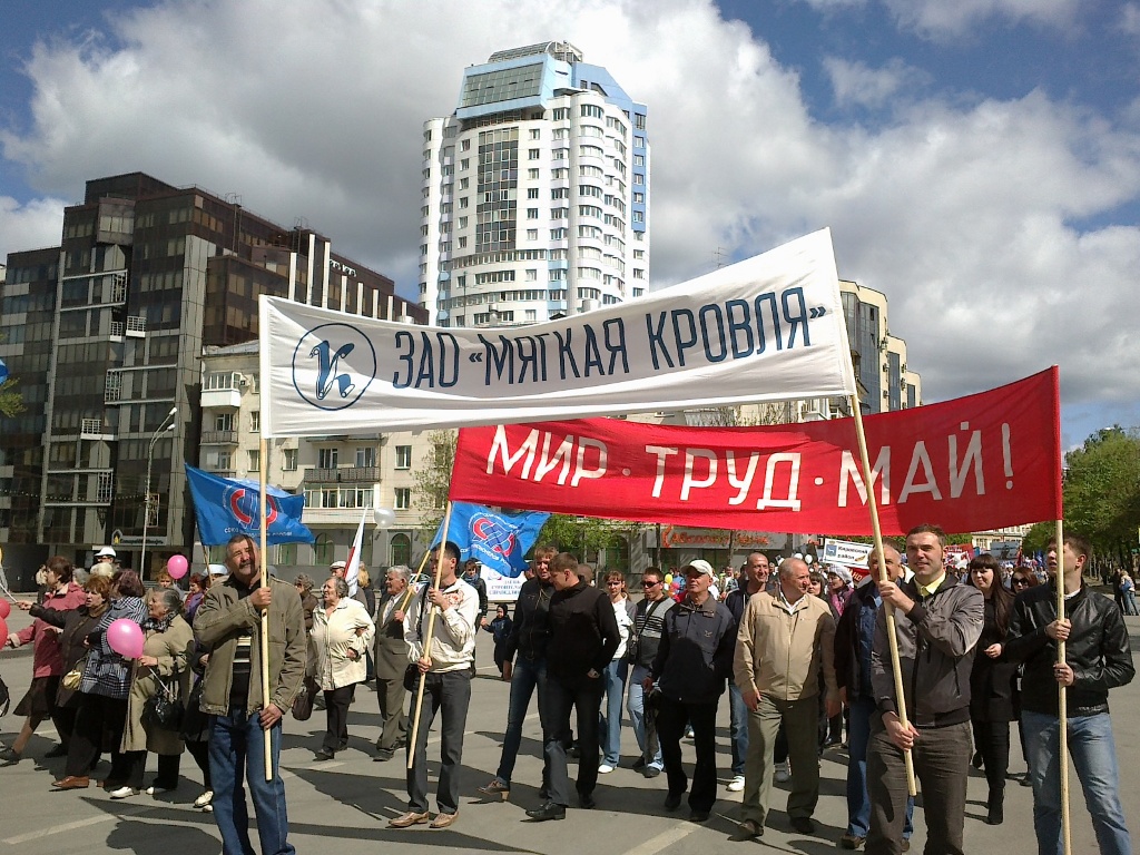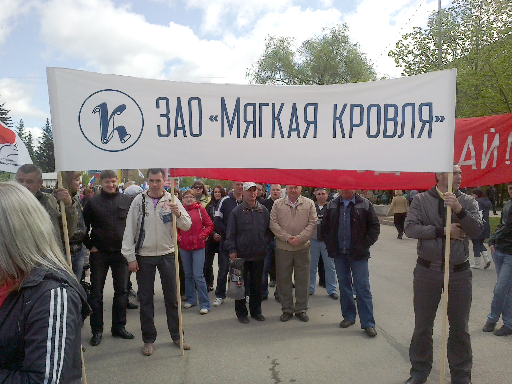 Завод «Мягкая кровля» принял участие на митинге посвященный Первому маю. Праздничное шествие трудящихся с транспарантами прошло от Дворца Спорта ЦСК до площади Куйбышева.