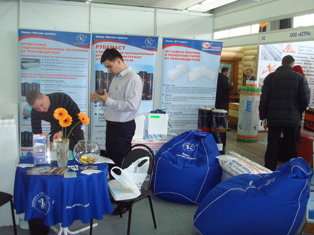 Участие в выставке «Стройиндустрия»- традиция для завода «Мягкая кровля». В этом году на стенде завода была представлена часть Теплого дома из несъемной опалубки. Всю конструкцию дома можно было посмотреть на месте, проконсультироваться со специалистами, ознакомиться с ценами на продукцию. Также были представлены образцы кровли и гидроизоляции: рулонные битумные, модифицированные наплавляемые кровли и рулонные наплавляемые материалы, а также битумы и мастики.