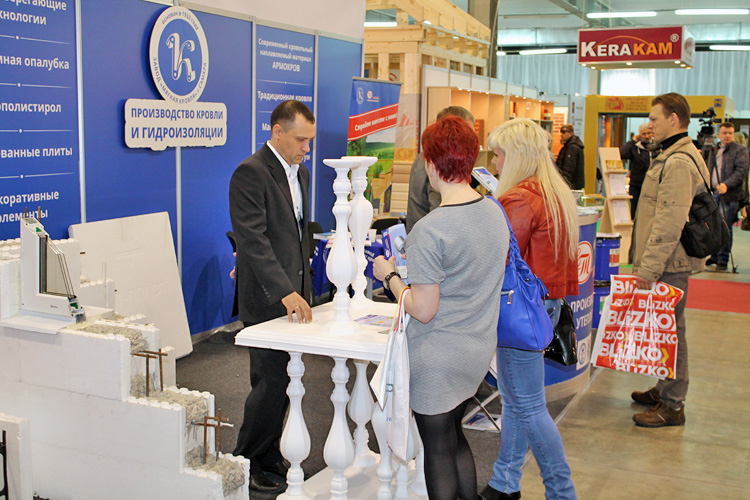 Завод «Мягкая кровля» встречал на своем стенде посетителей образцами не только гидроизоляционных и кровельных материалов, но и энергосберегающей технологией строительства домов.