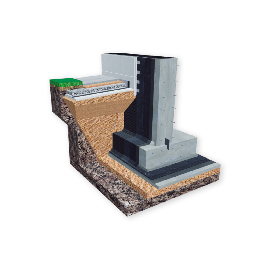 Cистема используется для гидроизоляции фундаментов зданий и сооружений с техническим подвальным этажом, расположенных в песчаных грунтах с низким уровнем грунтовых вод. Уровень грунтовых вод определяется в ходе изысканий и проектирования.