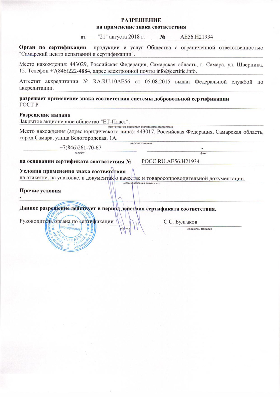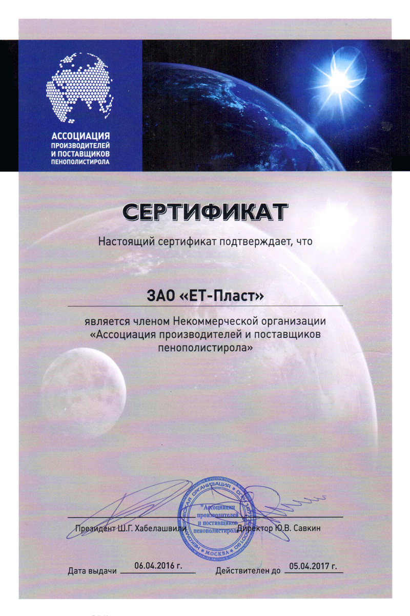 Сертификат ЕТ-Пласт